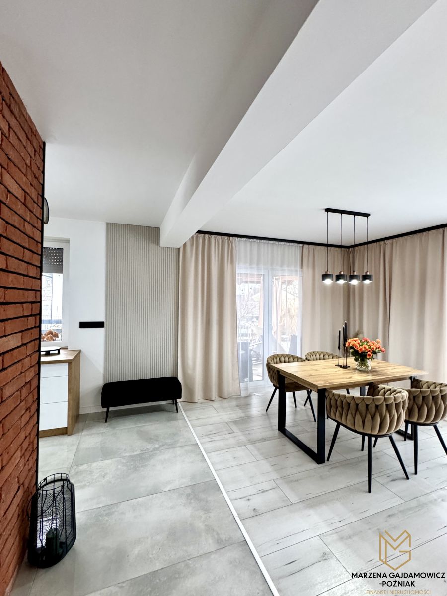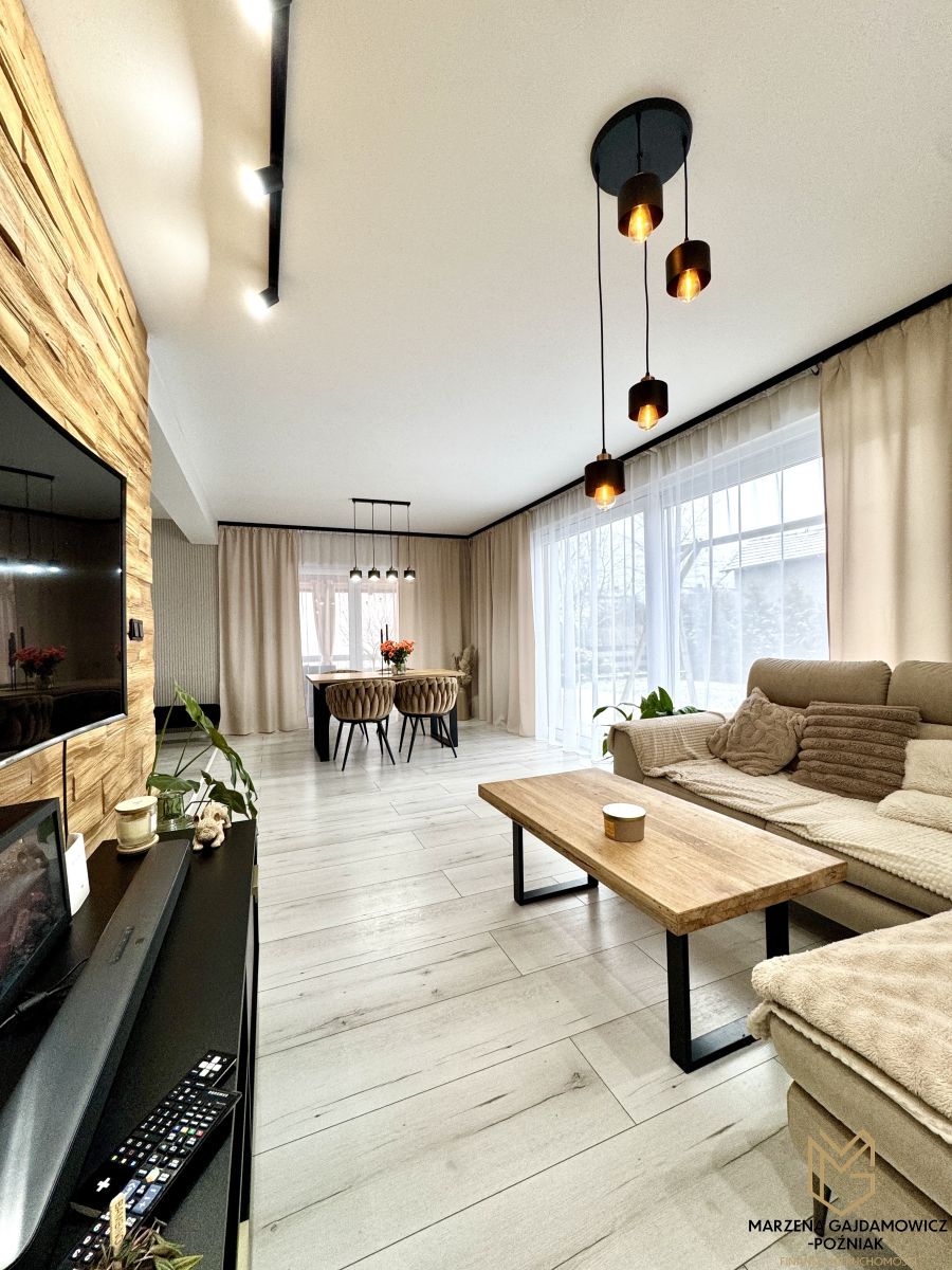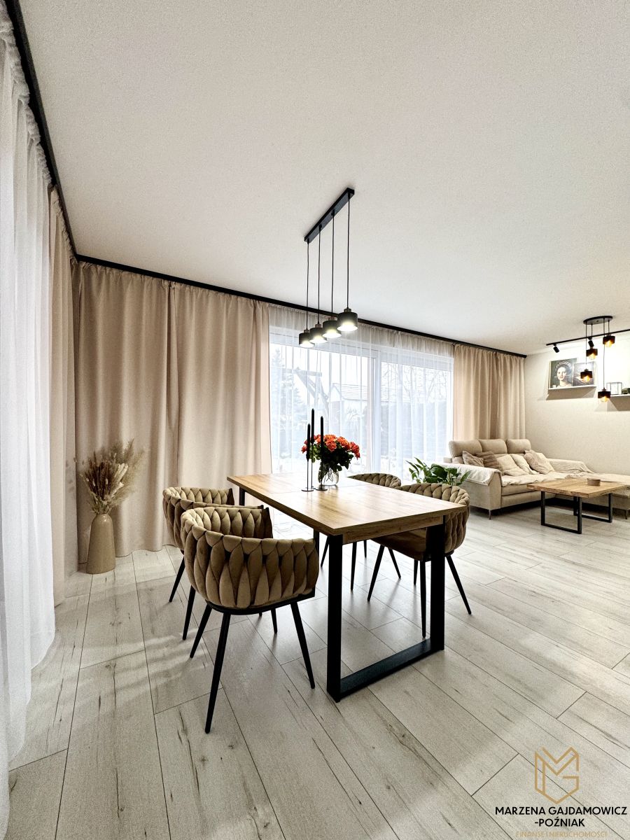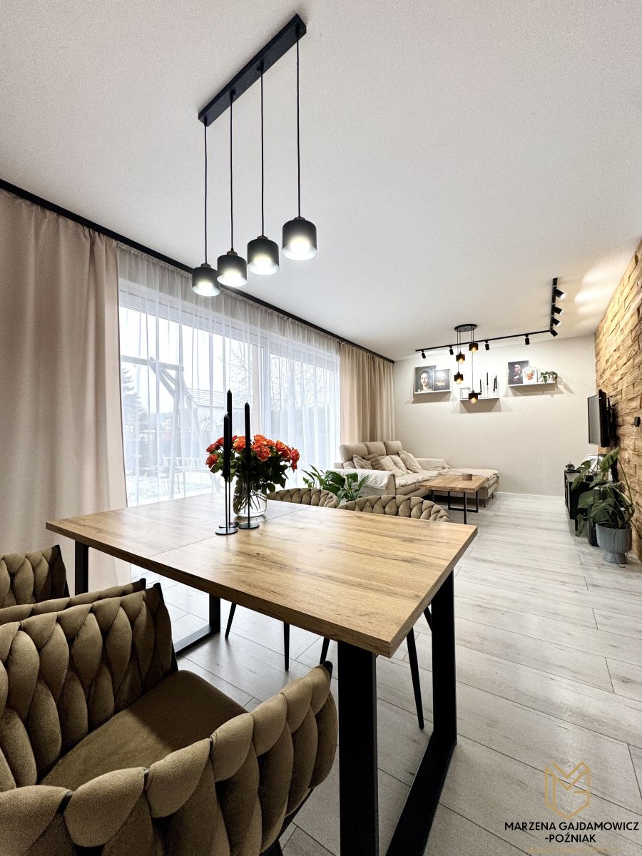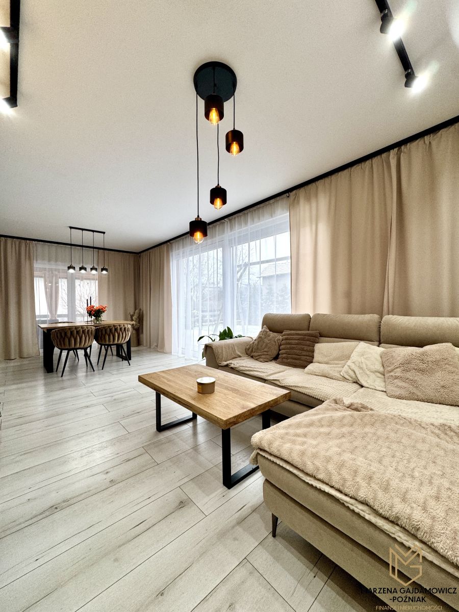 Dom bardzo dobrze zaizolowany co generuje niskie koszty ogrzewania (piec na pelet w pełni zautomatyzowany), wykonany w tradycyjnej technologii z użyciem najwyższej klasy materiałów budowlanych i wykończeniowych. Ogród z nawadnianiem roślin zaprasza do odpoczynku po dniu ciężkiej pracy.